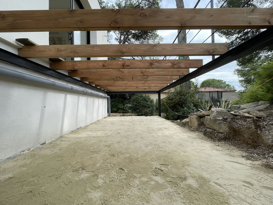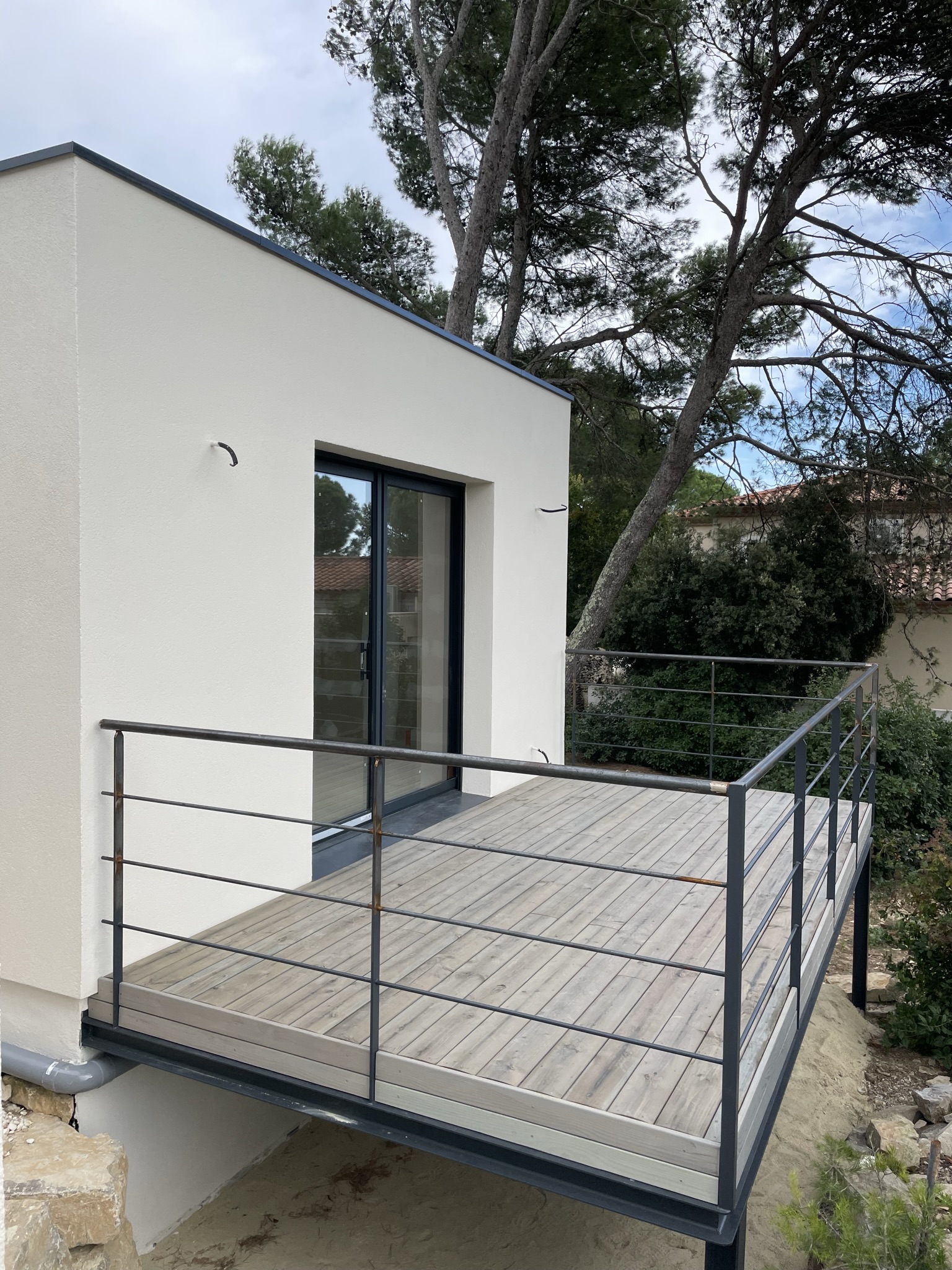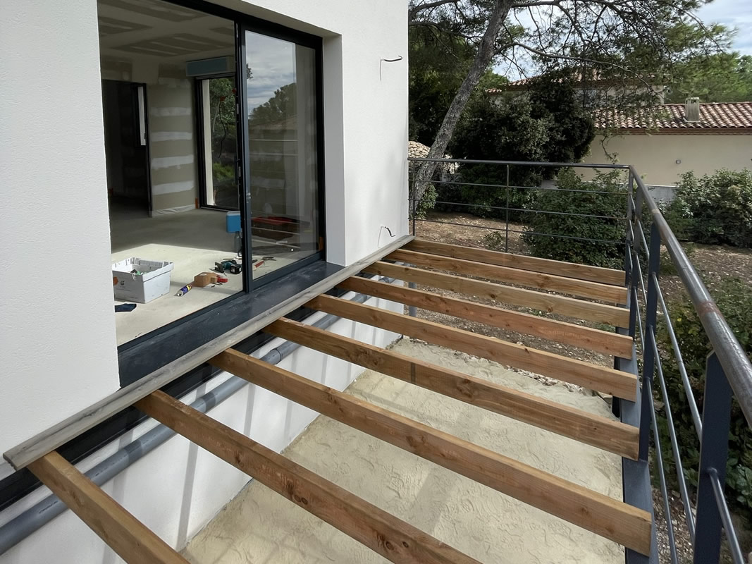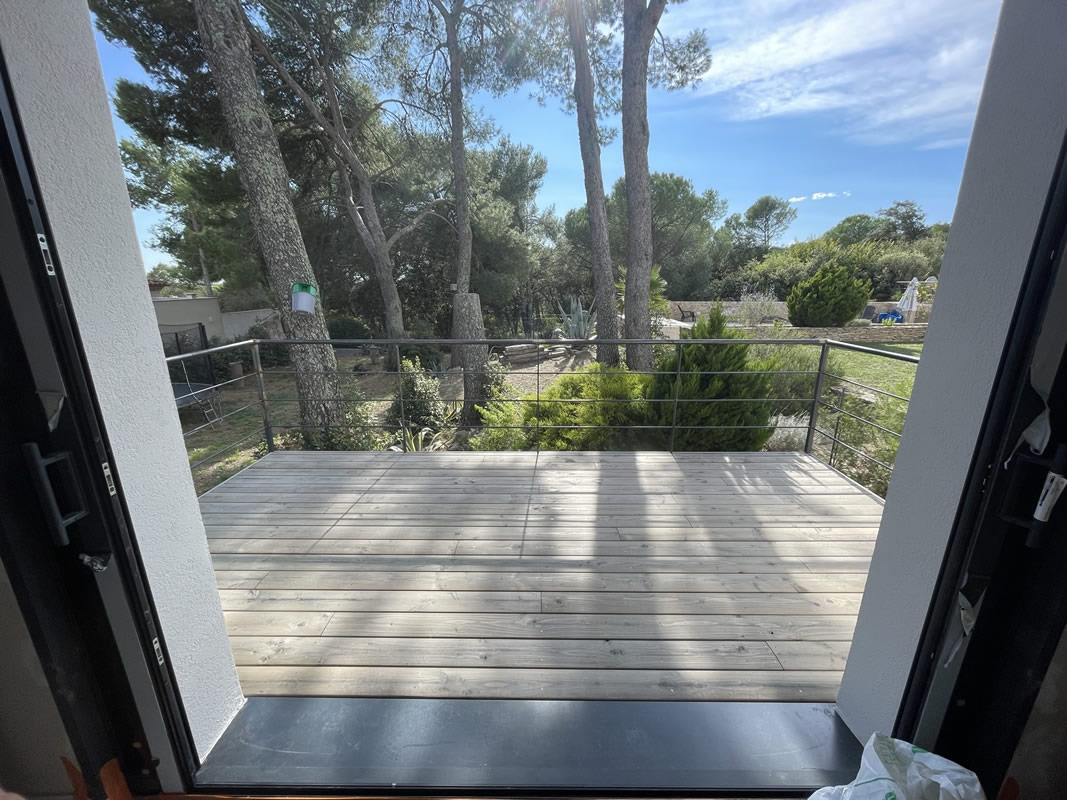 Une terrasse bois sur ossature métallique vient compléter cette construction, une belle indépendance pour de belles vacances.