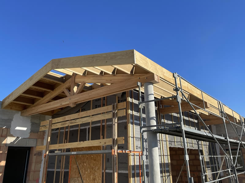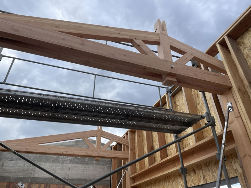 Cette extension sera chapeautée par trois grandes fermes latines avec pour particularité un débord extérieur d’environ 1.5m.