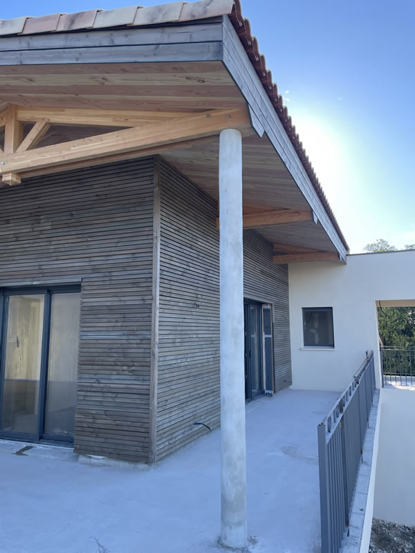 Un bradage grisé ainsi qu’une volige naturelle sont posés pour l’aspect extérieur.